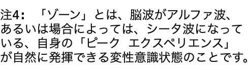 ゾーン (注4) に入り、エクスタシスの状態になる重要性は